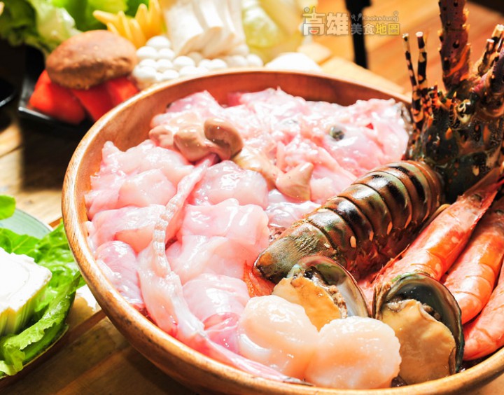 以大量菜頭、昆布熬滾的湯頭用來鮮涮海鮮配料最為合適,整隻龍蝦或蛤蠣再下鍋熬煮後,湯頭更鮮美了!尤其安康魚肉,肉質飽有彈性、口感極佳。而安康魚肝則以秒數計算下鍋時間,以保魚肝的甜嫩滋味唷。