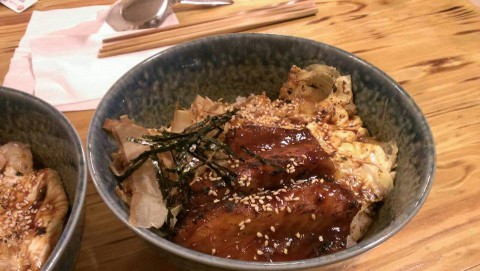 這家……走過路過一定會錯過的小店家,主要賣著日式丼飯,丼飯價格還蠻親民的,100元以下唷~雖然店內有點簡約,不過整體還是乾乾淨淨的,也有冷氣吹!!店家建議丼飯請由上往下舀起吃~這樣吃起來比較有層次感唷!!