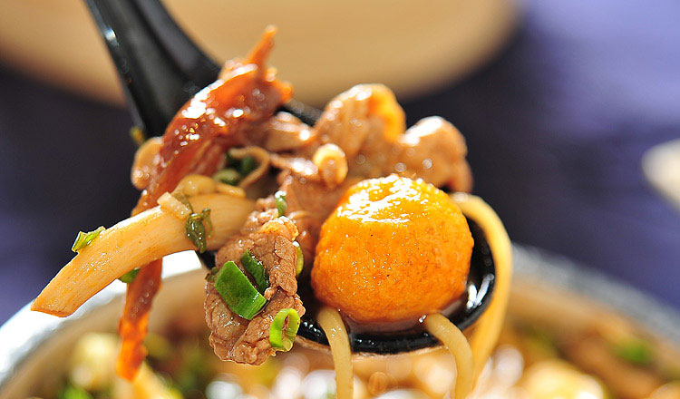 先來講湯頭,採用了大量牛、豬、雞骨及蔬果與中藥大火熬煮至湯頭鮮紅濃郁,其中還必須熬入“自家親熬的麻辣醬”,可見這一碗紅通通的老火鍋湯頭光是小辣就很過癮囉!而牛肉麵鍋中有熬得相當入味的牛肚、牛筋還有現燙牛肉片,配料有凍豆腐、豆皮、黃金魚蛋及香菇等,而較特別的是,湯汁一入喉時,最先感受到菇香、肉湯的鮮味,再來則是麻辣的後韻,多層次的口感變化,值得一試!