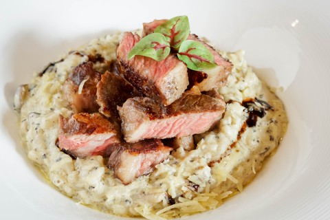濃稠牽絲的「牛小排菇菇起司燉飯」完美呈現義式米粒口感!