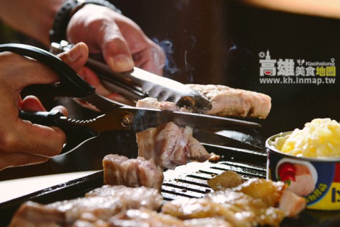 上桌前略撒雪鹽作提味,此道也建議由專人代烤,厚切豬五花的油花分布均勻,油香滋味本來就是鮮甜美味,烤熟後吃原味沾日式醬汁或生泡菜都是台灣人最熟悉的吃法,但搭上自作的日本辣醬或生泡菜更添日本風!如果自己烤的話,別烤過熟都會是道闔家喜愛的燒豬。