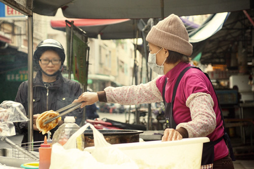 這攤已經開了很長一段時間的蔥油餅老攤,雖然開在巷子裡不太好找,但生意還是很好蔥油餅都是現點現捏現煎,老闆娘雙手很靈巧,瞬間就把肉餡跟蔥跟包進麵糰然後丟到煎板上,所以即使是現做的但也不需要等待太久!!