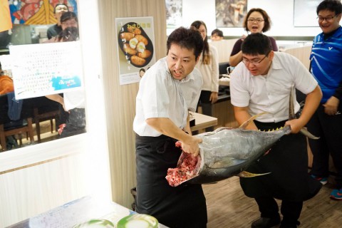 說到店內的一大特色呢,就是經常不定期的舉行各種活動,而其中最受歡迎的就是屬鮪魚解體秀莫屬了。
