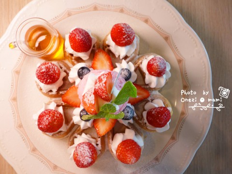 有天偶然在網路上看到「冬季限定!滿滿草莓的花瓣鬆餅兒」我的天兒,整個也太浪漫了吧!