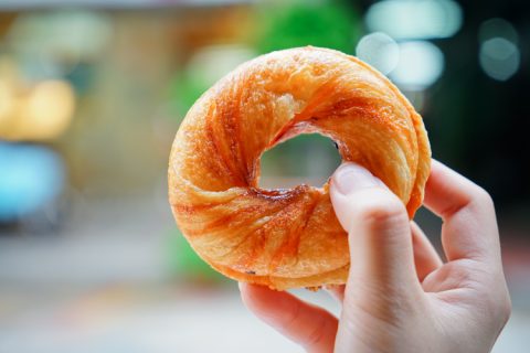 烤甜甜圈不論是外觀上或是吃起來的感覺其實似乎比較接近可頌那樣,外酥內軟。而根據店家的說法,烤甜甜圈雖然製作過程比較花時間且費工,但好處是比油炸的還要低熱量且不油膩。