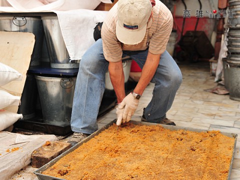 「接手」老人家的堅持,不是一件簡單的事。從民國49年起,老店門口就重覆上演著一幕幕不變的畫面與一樣樣不變的器皿(矮凳、糖鏟、大鐵鍋、大冬瓜、糖磚…),只是主人翁從老父親又到女兒女婿,每個人肩上乘載的是幾上千上萬斤的冬瓜以及老鹽埕的手工冬瓜糖口碑,又重又甜的負擔讓這一塊塊糖磚的「冬瓜甜」及「冬瓜香」一鏟一鏟飄香了半個世紀!推薦老店手工「冬瓜糖」及「冬瓜片」。輕敲冬瓜、聽冬瓜聲確認每一批新貨都是「尚青」!聲清脆動人的諾大冬瓜依季節產地直送其含纖維及水分都最高,一顆顆當日新鮮削皮、切塊、洗滌、到16小時的潔淨處理,從源頭就不假他手。但緊接,最艱辛的大工程於隔日,將幾千斤重的冬瓜片下鍋熬煮,其中只需加適量台糖特砂,轟隆隆的都在傳承50年載的大鍋爐中熱火熬煮著…,時時刻刻、分分秒秒都需捱著高溫熱氣守住爐子,因為全程都需手工控制火侯、溫度及適時攪拌,最後待焦黃清香的冬瓜糖砂成形,倒入鐵盤切成四方形曝曬成塊,耗時48個小時大功告成!這不是每位冬瓜糖師傅都熬得住的,一路走來也一路走去,最後,這樣的甜蜜負荷還是自個家人繼續傳承。