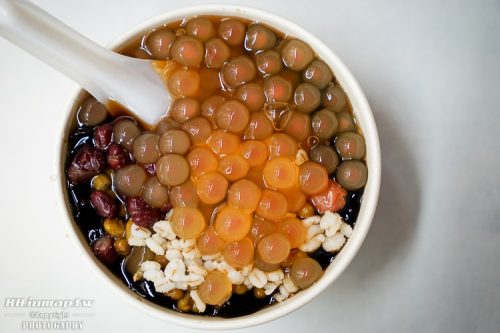 特製的紅心粉圓主要是加入了紫山藥的關係才會呈現出這不一樣的色澤,其他像豆類以及仙草也都是店家手工製作的呢。