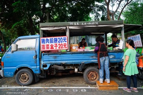 一問之下才終於知道是賣豬肉餡餅跟韭菜盒的攤車,而阿伯對這間店整個就是讚不絕口,不但誇老闆跟老闆娘人很好,也大力稱讚說這裡是他吃過最好吃的韭菜盒!