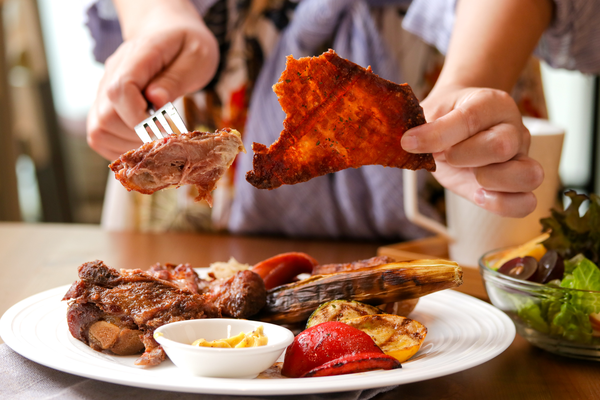Remember EAT 記得吃排餐新菜色–經典脆皮德國豬腳一上桌,自然吸睛。小貼心處是主廚已將豬腳外皮片下,先壓再炸,逼出膩口油味,特別酥脆!再將豬腳送進烤箱十分鐘,烤出迷人膠質。配菜用料豐富,除了肉香多汁的德式香腸,還有口感鬆軟的薯塊,以及保有水份的黃、綠櫛瓜與玉米筍。有肉有菜,堪稱經典。
