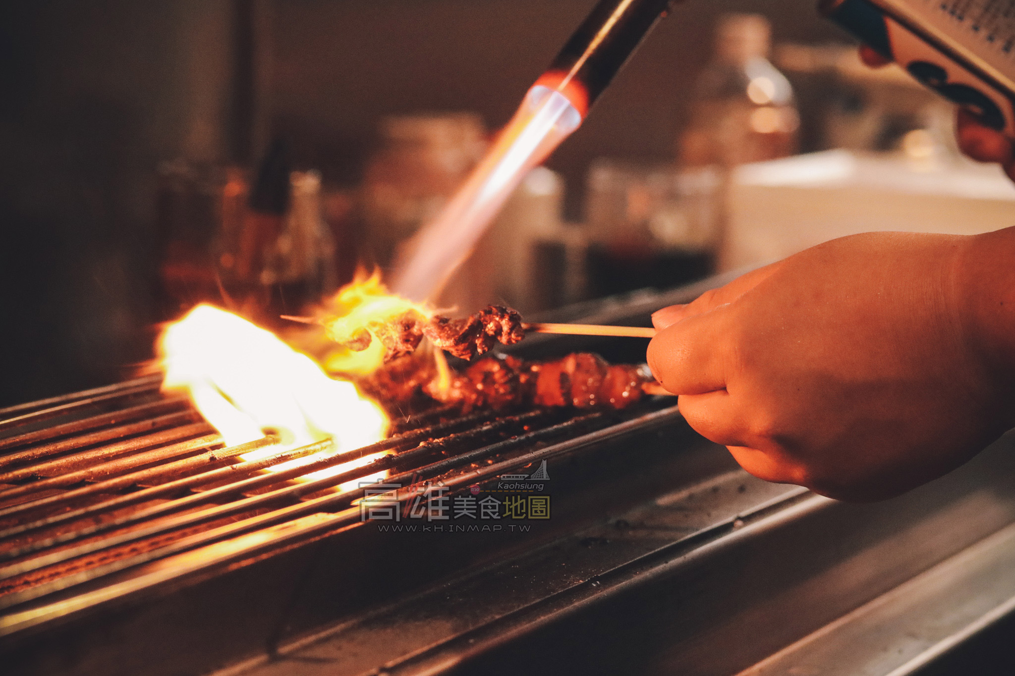 這裡的各式炭串除了在炭火上燒烤之外,在食材達到一定熟度後再使用火槍炙燒,能逼出肉的多餘油脂,又能炙燒出鮮香的原味。