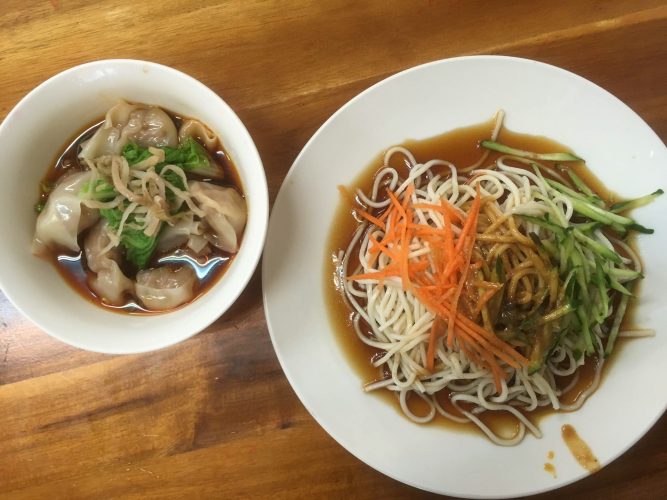 門口招牌就屬涼麵跟抄手字體最明顯,必屬老闆推薦餐點,各點上一份湊個雙主食,熱呼呼的紅油抄手配上清爽涼麵,兩種口味一次滿足。