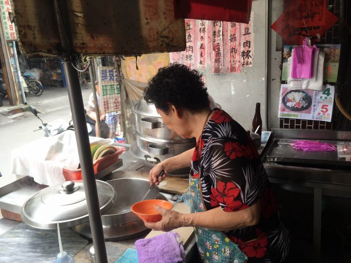 當地人會拿碗來買菜粽,不過尺吋很迷你,一碗裝著兩三顆菜粽剛剛好吃一餐!推薦一定要淋上大蒜末!
