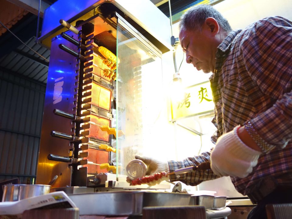 烤爽的燒烤方式,是利用機器方式轉動烤串,才能每隻烤串均勻受熱,每隻烤串都會刷上特調醬汁,因為垂直擺放關係,多餘的湯汁都會滴落,烤串口味特別清爽不油膩,加上烤好時會撒上特調胡椒粉,讓味道更加凸顯增加鹹香度。