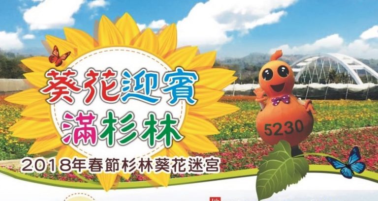 春節期間最熱門的旅遊景點全台最大向日葵迷宮,在杉林快樂登場囉!杉林向日葵花海,共有四大花區,其中3公頃主場葵花迷宮,地點在高181線道旁, 107年2月10日開園,歡迎大家2月15日至2月25日來闖迷宮遊花海;最特別的是今年在主場葵花迷宮旁,有由鳳南扶輪社贊助設立的迷宮入出口城門,融合現代與古典的藝術裝置,精心規劃來迎接遊客的蒞臨。