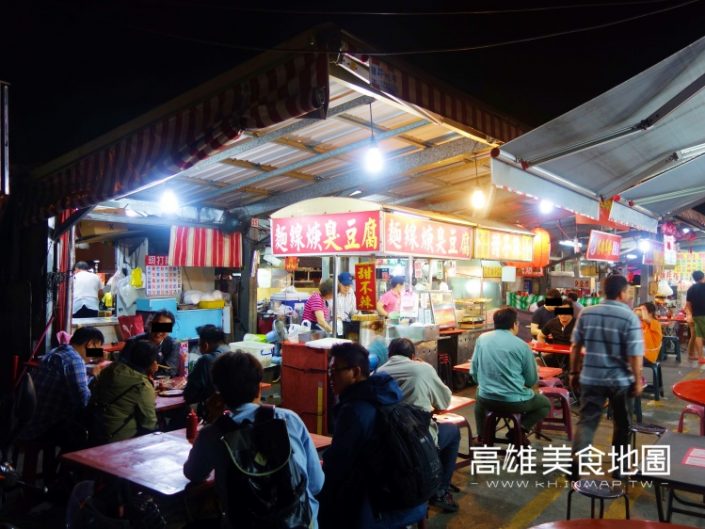 在這裡逛夜市會發現一個很有趣的現象,一邊是熱炒海鮮攤,另一邊怎麼逛都有鴨肉、魷魚跟八寶冰,重複性小吃很多,但每一間招牌都相當有歷史年代,排隊人氣此起彼落,各有擁護支持者。今天要介紹的是在夜市後段有一間無店名的麵線羹臭豆腐,特別有人氣,走近一瞧桌上都有好幾樣美味小吃,原來跟隔壁的甜不辣是同一家族經營的,可併桌食用,很喜歡這種類似做在廟口可以叫整排小吃併桌的熱鬧感。