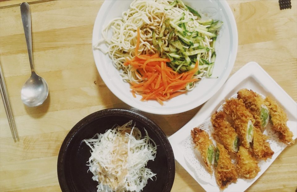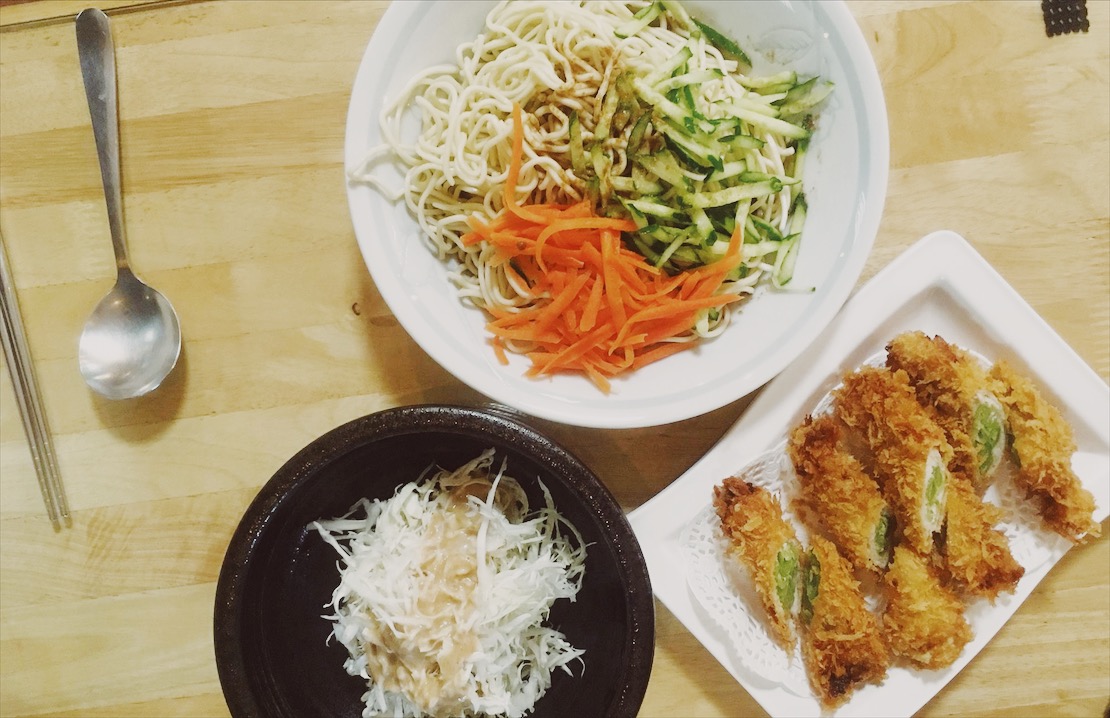 涼麵就是傳統的小黃瓜和紅蘿蔔的標準配菜