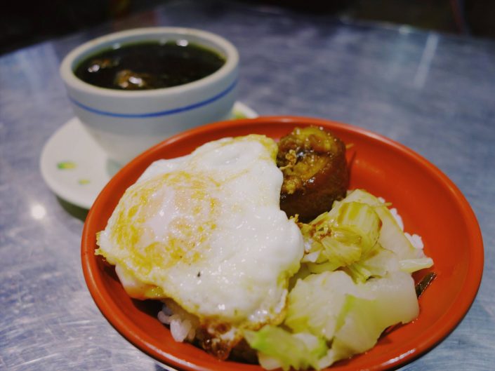 帶皮的腳庫肉滷到顏色呈現深琥珀色,十分入味,帶皮肥肉口感ㄉㄨㄞㄉㄨㄞ,吃起來不會有油膩感,腿庫肉的部分控到好咬不失肉味,醬汁味道香甜帶點鹹香,是標準南部甜口味。煎到半熟的荷包蛋,黃澄澄的蛋黃膏混入醬汁讓口味更加溫潤,口感更順滑。