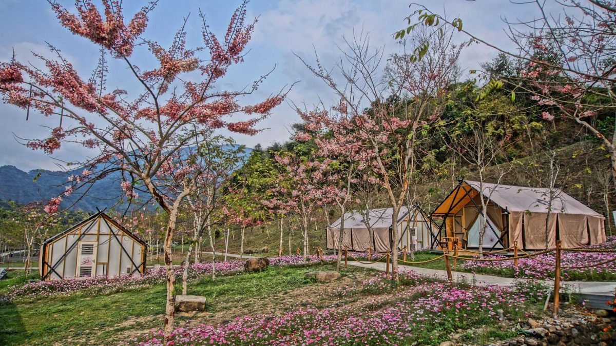 【高雄訊】寶來花賞溫泉公園種植八百多株陣雨樹盛開了!陣雨樹又被稱為平地櫻花或花旗木,是六龜的區花,觀光局評估今年盛開的花期約為三月下旬至四月底,目前已陸續在寶來花賞溫泉公園中燦爛盛開了,為原本青山綠水的園區增添不少春色,遊客可來園區泡湯池,邊洗SPA邊賞花,也可以在陣雨樹下露營住宿,享受慢、食、旅的春日悠閒。
