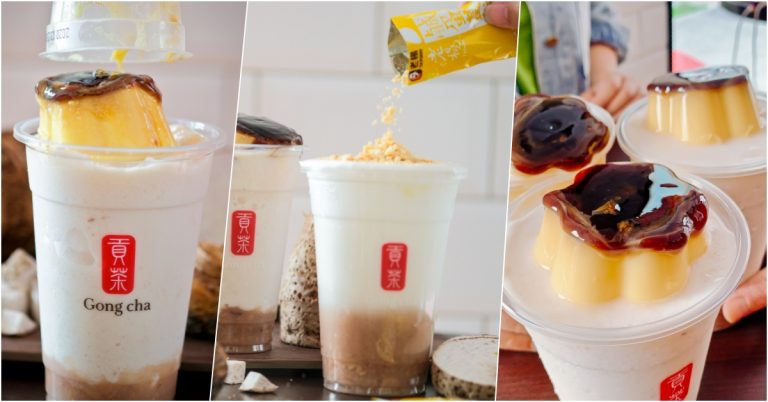 (高雄美食) Gong cha貢茶-濃芋系整顆布丁手搖新品呼叫芋頭控!聯名老楊蛋黃酥餅這個很不同!