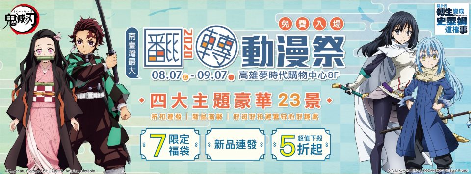動漫界的暑假盛會「翻轉動漫祭‧高雄場」,將於8月7日至9月7日,在夢時代購物中心8樓時代會館盛大登場!活動免費入場,超過300坪的展區,豪氣推出23座人氣動漫主題造景,並首次展出「Re:從零開始的異世界生活」和服雷姆、「刀劍神域GGO篇章」詩乃及「為了女兒我說不定連魔王都能幹掉拉」提娜1:1角色模型。