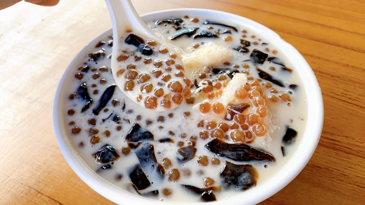 粉圓跟仙草給的量都很足,仙草切成條狀較好入口,粉圓Q彈有嚼勁,搭配煉乳跟黑糖的甜味,會忍不住讓人一口接一口的品嚐。