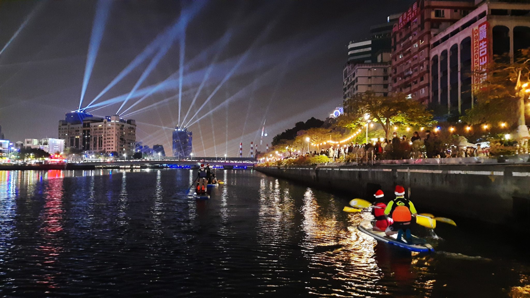 △110年1月,高雄市陳其邁市長及基隆市林右昌市長在愛河體驗獨木舟航行