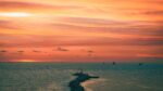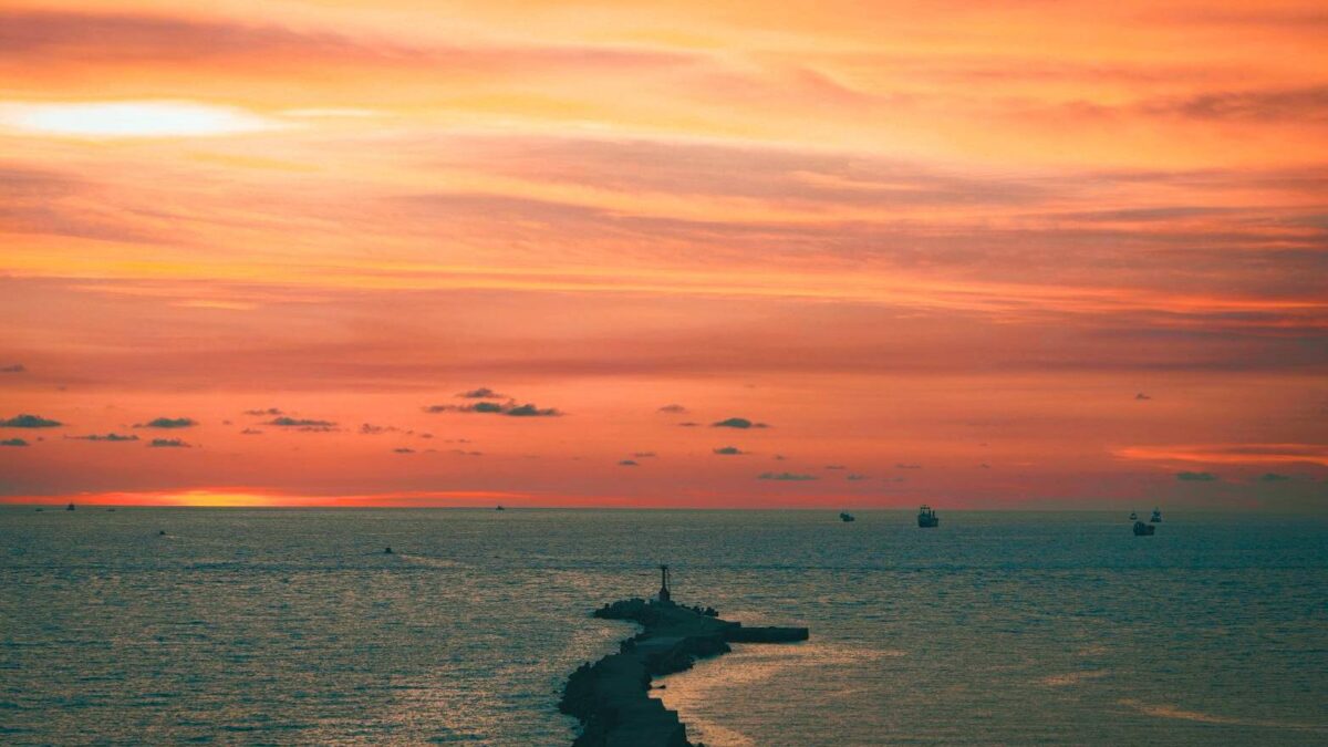 ▲黃昏時刻,滿天彩霞下的海馬堤防更顯旗津夕照的獨一無二