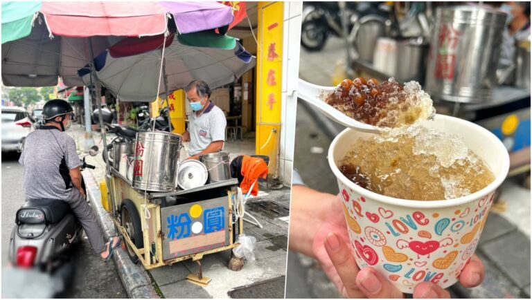 這家粉圓冰就在武廟路上,遠傳電信門口,古早味攤車加上五彩遮陽傘,其實路過不難發現,而且就在馬路旁邊,購買好方便。