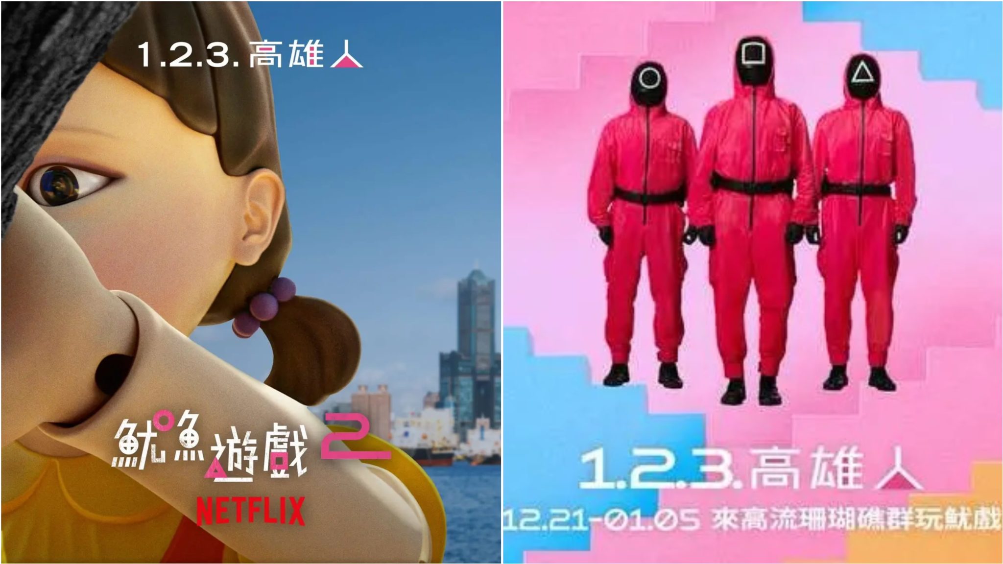 韓國劇集《魷魚遊戲2》將在2024年12月26日上映, Netflix為了宣傳12月21日在高雄舉辦「1.2.3.高雄人」活動!