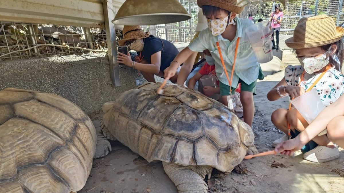 ▲夜宿動物園營隊深入象龜展場與動物親密接觸