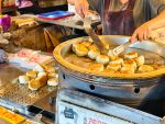 一到攤位前,你一定會被那個超大的圓形鐵鍋給吸引住!看著老闆超熟練地倒水澱粉、蓋上蓋子,鍋子裡滋滋作響的聲音,還有白色水蒸氣一直冒出來,光是用看的就讓人期待到流口水啦!
