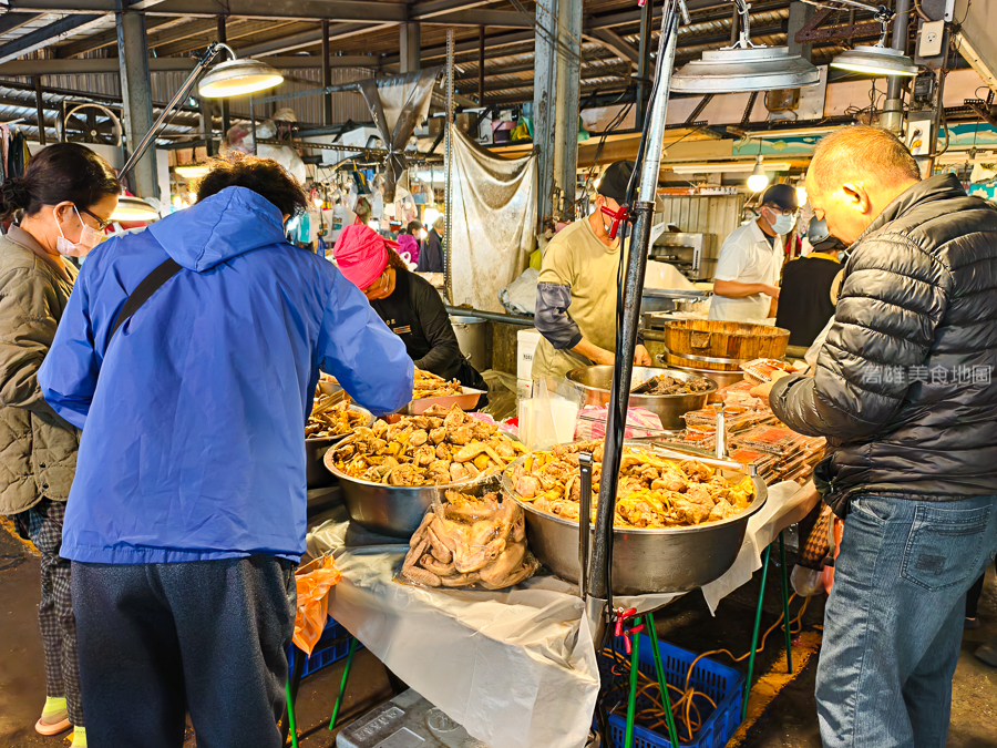 現場的畫面就是這麼熱鬧,一群人圍著攤位挑選。雖然生意很好、人流一直來,老闆娘有時候忙起來語氣會比較「在地且直接」,但這就是市場的人情味啦!大家都是快狠準,指著想要的部位就包走。有時候看著熟客一次買好幾大袋,就知道這攤在在地人心中的地位有多穩。