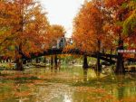 男生可在橋下,製造前景,女孩在橋上,一次就可以拍到2棵落羽松