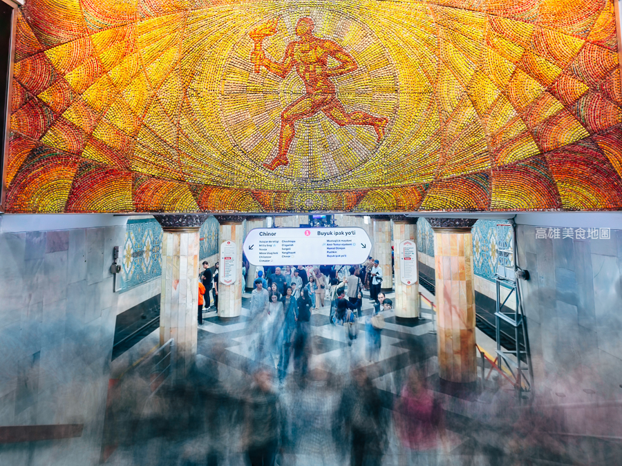每一站都有完全不同的獨立主題,像是「太空人站(Kosmonavtlar)」的藍紫色星空幻境、「藍色拱頂站(Alisher Navoiy)」充滿清真寺氛圍的華麗穹頂,還有代表國家經濟命脈的「棉花站(Paxtakor)」; 過去確實因為安全考量長年禁止拍照,但近年已經全面解禁啦