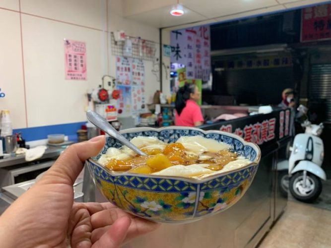 在岡山和平公園附近尋找美食小吃時,在一個不起眼的小路口發現了一台手推車,靠近一瞧發現全身包得密不透風的阿桑正在勺起一瓢瓢雪白物體,經過詢問後,原來是販賣豆花的手推車,出沒時間約每天中午左右,手推著豆花車在大仁北路沿路販賣豆花,沒有定點也沒有...